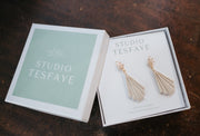 Each Studio Tesfaye earring set is handmade, handcrafted, and utterly unique. Up to three different colors of lightweight polymer clay mixed to create a one-of-a-kind shade and texture. We then shape and cut, bake, sand, and assemble each earring. Just for you.