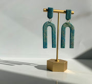 Feeling festive? Add a touch of glam to any outfit with our handmade glitter and green arch earrings.